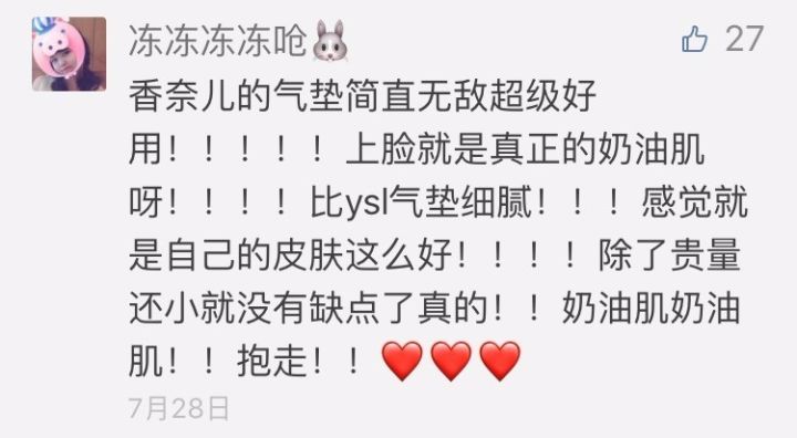 味道也是高级香,后台就有很多宝宝留言表扬了这个气垫,随便给你们截图看下,我不管我要去买了······